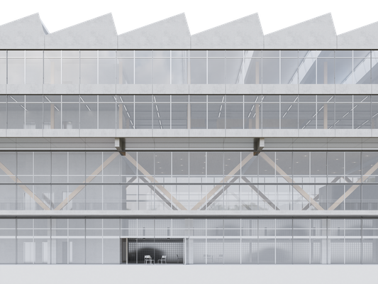 Die Räume haben konstanten Bezug nach aussen zum Fjord und zur Stadt. Die mehrheitlich transparente Fassade wird durch horizontale Fassadenbänder gegliedert. Ein charakteristisches Sheddach fasst die vielfältigen Nutzungen über die gesamte Gebäudelänge von 210 m zusammen und ermöglicht eine gleichmässige Nord-Belichtung der Räume.
