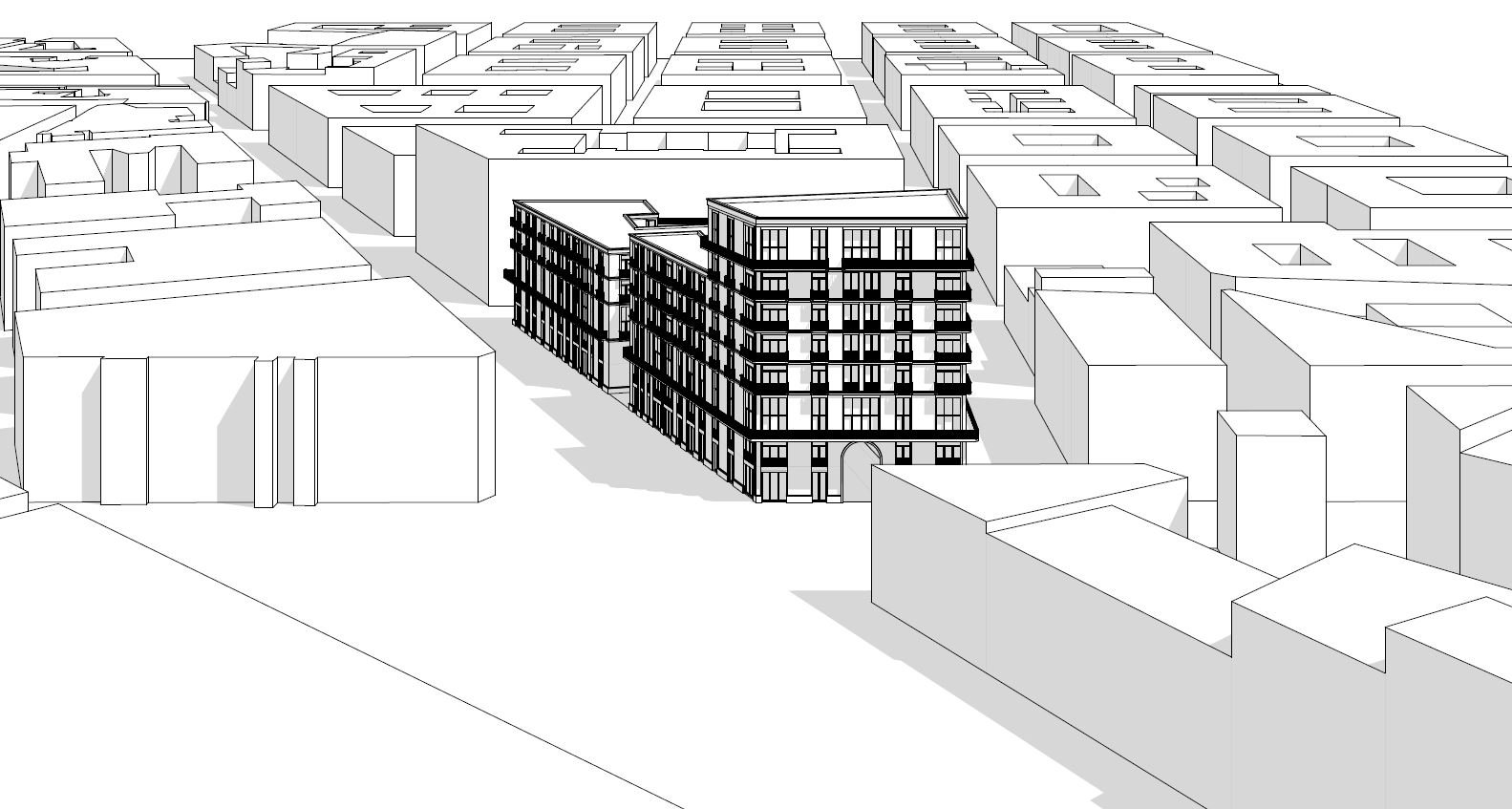 Das ausgewählte Quartier wird grundsätzlich von einem regelmässigen Strassenraster aus dem 19. Jahrhundert organisiert. Dieses Raster ist jedoch lückenhaft und die Strassen enden heute teilweise in Sackgassen. Das Strassensystem wurde für einer Weiterführung der bestehenden Struktur bereinigt.