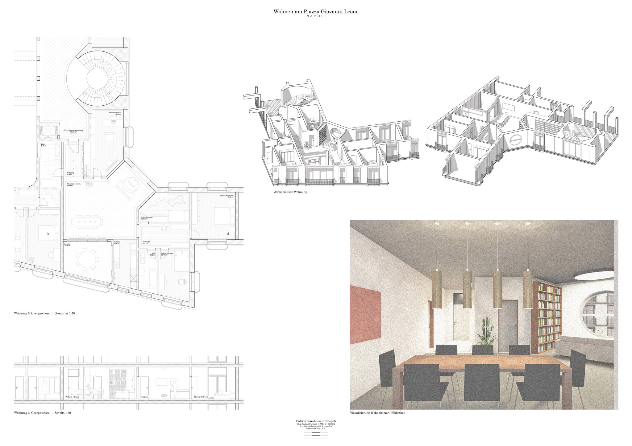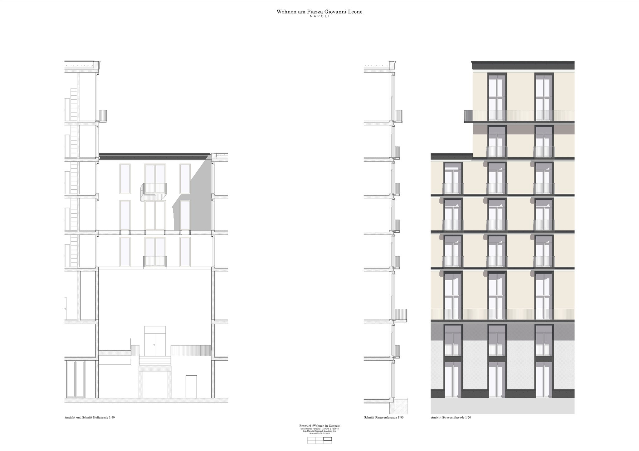 Innerhalb der Stadtstruktur von Neapel bestehen unzählige Verdichtungspotentiale, welche in dieser Arbeit anhand eines frei gewählten Quartiers mit Bauplatz untersucht werden sollte. In einem ersten Schritt sollte ein städtebaulicher Masterplan die Möglichkeiten darlegen. Im zweiten Schritt wurde anhand eines zugelosten Referenzobjekts ein daraus abzuleitender Entwurf entwickelt. Die Seminarreise im November 2019 führte nach Neapel und ermöglichte die Besichtigung der realen Situation vor Ort.